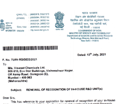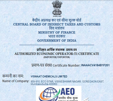 It is a resolve to continuously keep discovering new knowledge about chemical processes and then applying this knowledge to create new and improvised products that anticipate and meet market expectations globally. As a testimony of this conviction, the eve growing business portfolios includes clients spread in more than twenty countries across the globe. In recognition of its potential of servicing the international business Viswaat has been the recipient of the coveted award "2 Star Export House" presented by the Ministry of Commerce & Industry, Government of India and also is an AEO status holder (Authorized Economical Operator), with the certificate being issued by Central Board of Indirect Taxes and Customs under the aegis of the Ministry of Finance, Government of India.