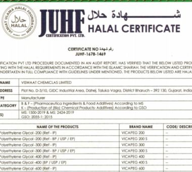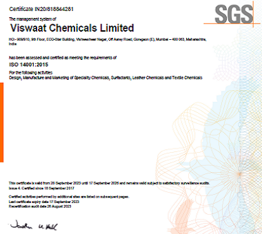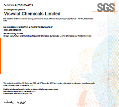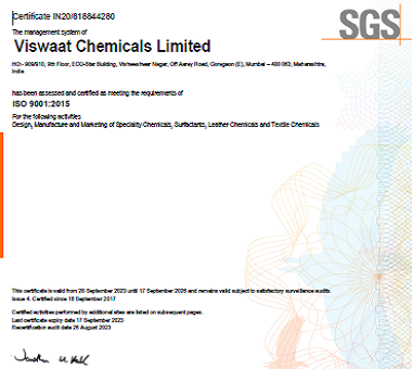 Viswaat Chemicals Limited was incorporated in the year 1996. The business model includes manufacture and sale of various specialty chemicals catering to industries such as Agro, Construction, Cosmetics & Personal Care, Inks, Leather, Paints, Paper, Pharmaceuticals and Textiles etc. Over the years a strong focus on Research & Development has enabled Viswaat, to develop and establish a robust portfolio of products catering to both the domestic and international clientele
